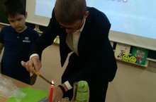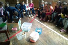 Сегодня лагерь посетил инспектор ГИБДД и ещё раз рассказал ребятам о безопасности на дороге. Во второй половине дня в актовом зале школы для всех желающих был показан мультфильм "Плюшевый монстр".