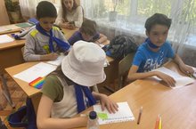 Сегодня среди отрядов прошёл конкурс рисунков "Мы за безопасность". Предварительно воспитатели провели беседу "Соблюдаем ПДД!".
