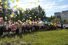 День знаний. Утро начинается на школьных дворах традиционной линейкой, первым звонком и морем цветов.