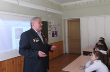 В 4 а классе перед ребятами выступил Гараев Р.Д., председатель совета партизан РТ. Он рассказал о своем отце Гараеве Д. Н., участнике Великой Отечественной войны, партизане, трижды побывавшем в плену у фашистов.