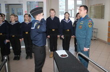 6 февраля в рамках Дня открытых дверей в гостях у сотрудников Главного управления МЧС России по Республике Татарстан побывали учащиеся 5 кадетского морского класса казанского лицея №78 «Фарватер». Мальчишки и девчонки словно сошли с корабля, представ перед старшими товарищами в форме моряков военно-морского флота – в черных пилотках, в тельняшках и прочего атрибута флотского костюма.