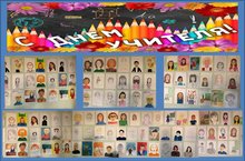 Портреты получились очень добрыми и милыми, и их было так много, что мы устроили настоящую галерею. Учителя с большим интересом рассматривали детские работы и восхищались юными талантами!