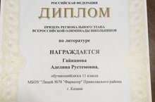 С 14 по 16 января 2018 года на базе Гостиничного комплекса «Регина» пос. Петровский прошел региональный этап всероссийской и заключительный этап республиканской олимпиад школьников по литературе. Гайнанова Аделина, ученица 11А класса стала призером олимпиады. Поздравляем Аделину и выражаем благодарность учителю русского языка и литературы Кофтункиной Елене Валентиновне за подготовку призера олимпиады.