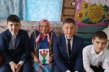 Ученики 7 класса Старо -Арышского филиала поздравили с праздником 8 марта ветерана труда Мазитову Альфию.