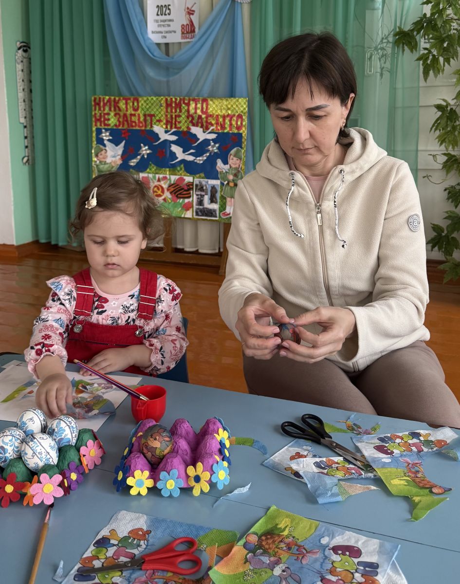 В преддверии празднования Светлой Пасхи в нашем детском саду прошел мастер-класс на тему «Изумительный декупаж» для воспитанников и их родителей. Все присутствующие познакомились с техникой декора – декупаж.В ходе практической деятельности дошкольники и родители освоили азы декорирования пасхальных яиц с помощью салфеток.Родители вместе с детьми вырезали, клеили, сушили, украшали свое изделие. В завершении у каждого получилась оригинальная, неповторимая работа.