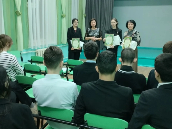 Буген мэктэбебездэ Кулланучы хокуклары буенча Республика олимпиадада катнашучыларны тэбриклэу тантанасы утте. Дэулэт алкоголь инспекциясенен Казан территориаль булеге житэкчесе Егорова М.И. катнашучыларга дипломнар хэм кыйммэтле булэклэр тапшырды