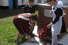 Ә укучылар музыкаль композиция белән чыгыш ясадылар. Сугыш кырларында ятып калган һәм сугыштан исән кайтып та бүгенгесе көнне безнең арабыздан китүче ветераннарыбызны берҖ минут тынлык белән искә алдык һәм алар истәлегенә веноклар салынды.