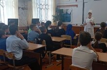 Биектау ФАП фельдшеры Сабирова М.Г. мәктәбебезнең 7-11 сыйныф укучылары белән беренче ярдәм күрсәтү дәресе үткәрде. Ул барлык кешеләр һәм балалар беренче ярдәм күрсәтә белергә тиеш, диде.