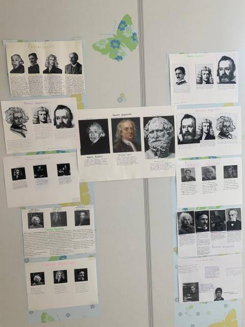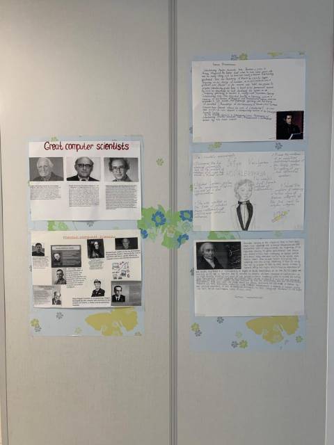 Накануне проведения предметной недели у учащихся 5-7 классов было домашнее задание – подготовить постеры, посвящённые выдающимся представителям точных наук, на английском языке. 5 классы представили великих математиков, 6 классы – знаменитых разработчиков информационных технологий, а 7 классы – выдающихся физиков. Все постеры были выставлены на 1-м этаже, и каждый мог оценить работу наших гимназистов и узнать что-то новое об этих знаменитостях и их вкладе в науку.