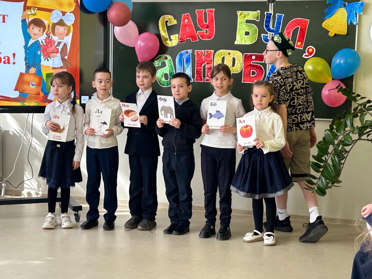 В 1-ых классах гимназии привели праздник "Прощание с Алифбой". Дети рассказывали стихи, пели и играли игры. На праздник пришли Шавали, Царица знаний , Вопросительный