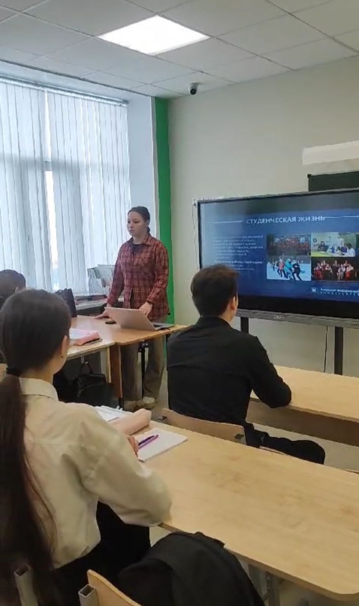 Сегодня, 6 февраля, состоялась встреча 9Б класса со студентами и преподавателем Стариковой Татьяной Витальевной, Рыбно-Слободского агротехнического техникума . В ходе встречи они поделились информацией об образовательной программе техникума, сроках обучения. Так же рассказали о студенческой жизни и возможностям для досуга. Приглашали учиться.