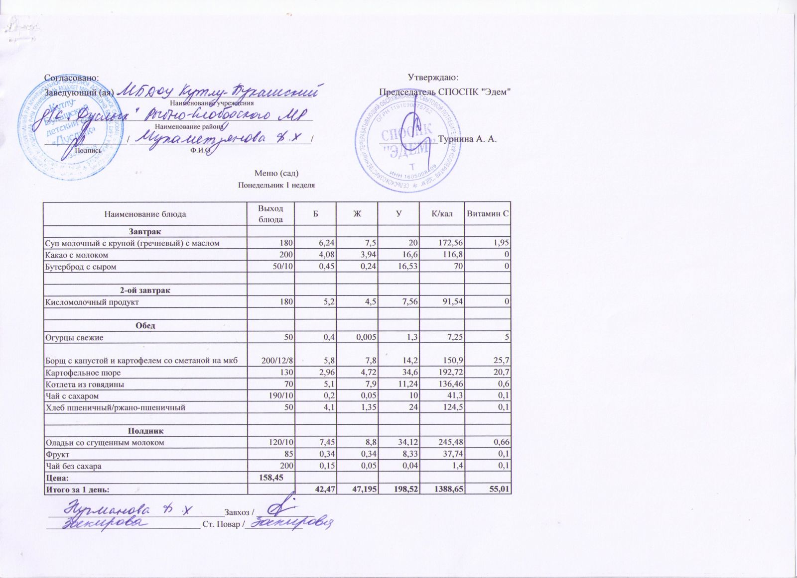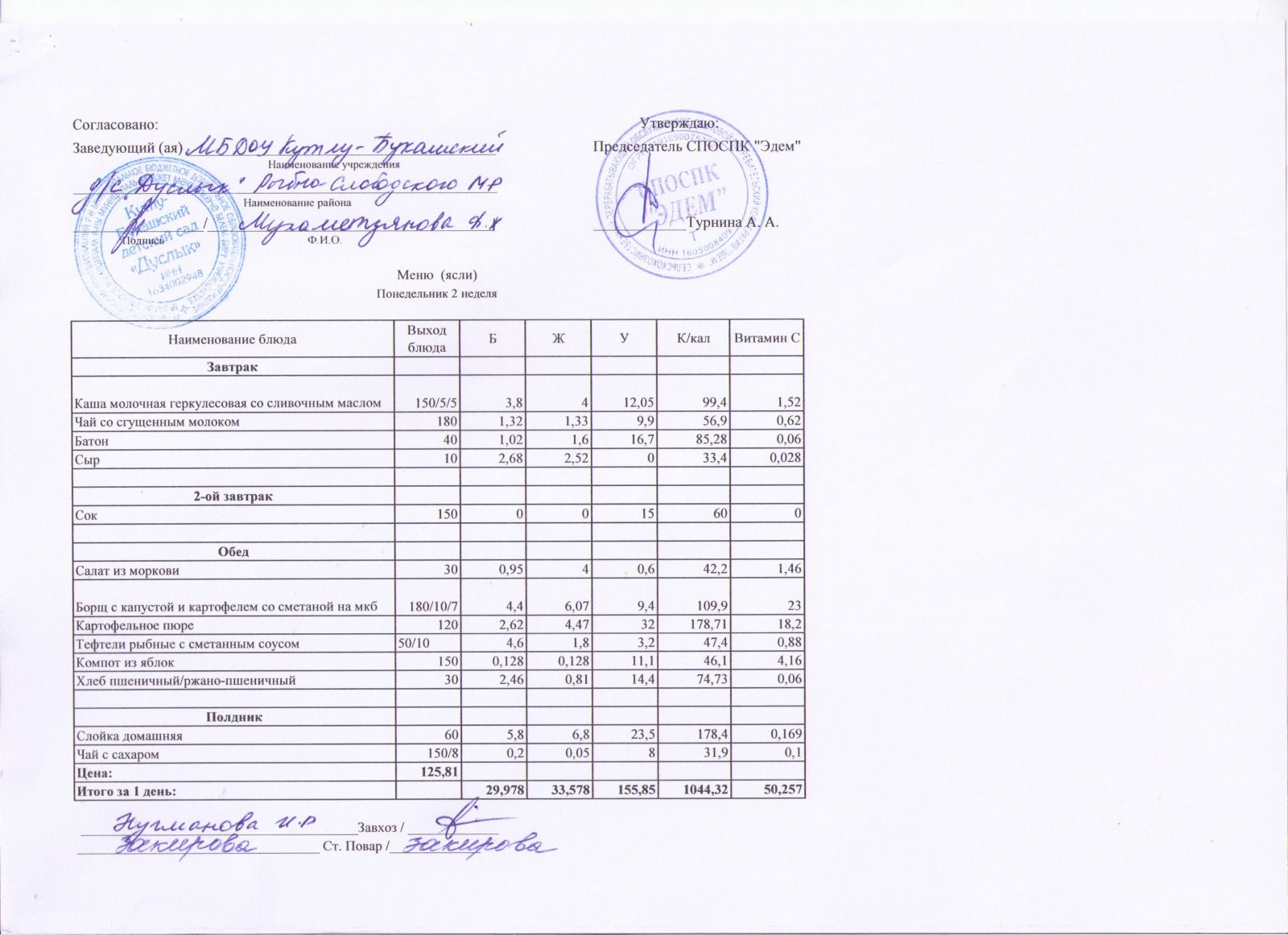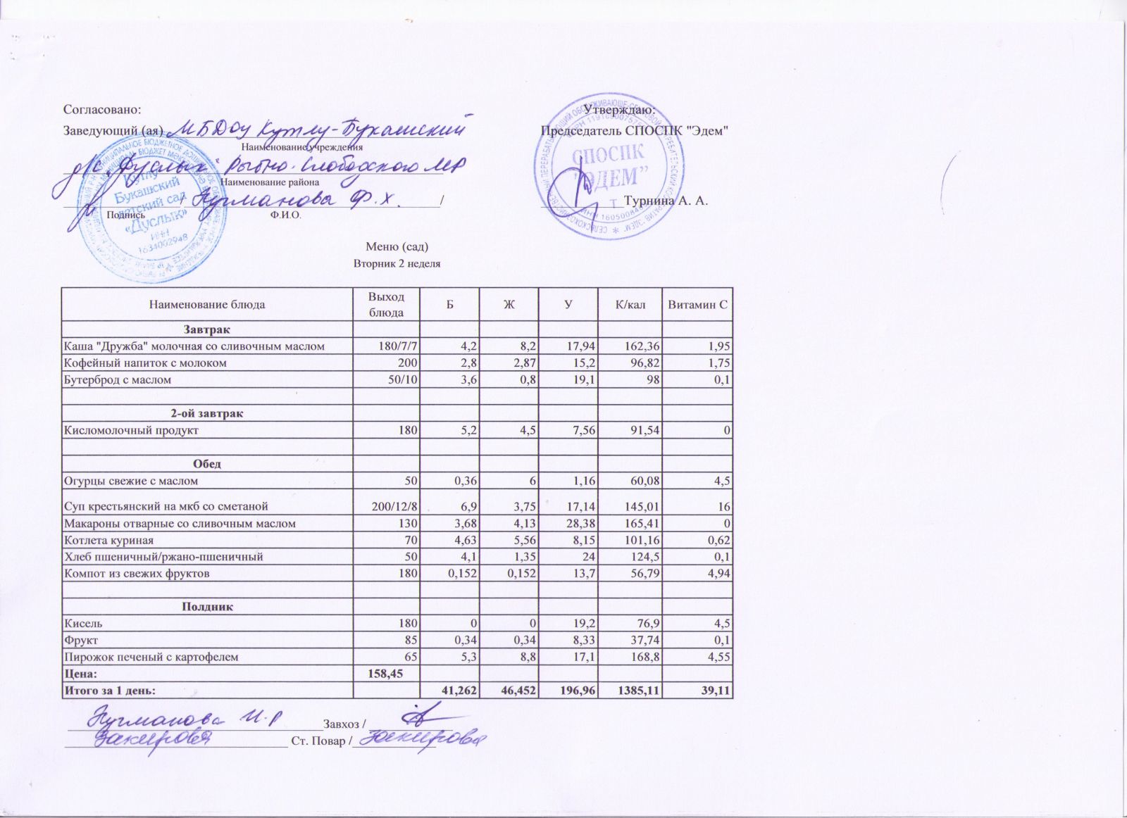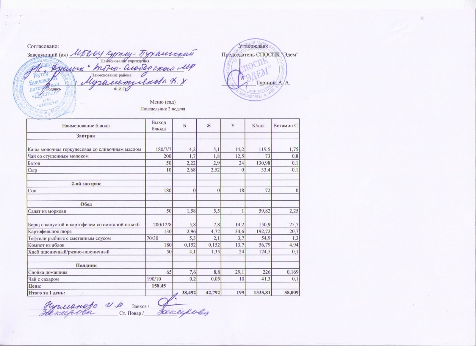 Организация питания в образовательной организации/Балалар бакчасында туклануны оештыру