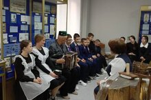 Шушы уңайдан, тарих һәм җәмгыть белеме атналыгы кысаларында тарих укытучысы Степанова Л.В. белән берлектә, 10 нчы сыйныфлар өчен гаепсезгә корбан ителгән Шәрифуллин Әгъзәмулла Шәрифулловичның оныгы – Булат Асгарович Каюмов катнашында очрашу-дәрес үткәрделәр.