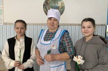 В преддверии 8 Марта ПЕРВЫЕ вручили цветы, сделанные своими руками, женщинам-работницам школы.