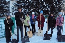 6 класс очистили от снега памятник погибших ВОВ