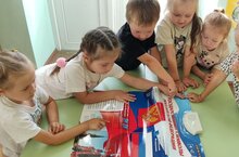 Безнең балалар бакчасында Россия Федерациясе Дәүләт флагы көненә багышланган тематик көн узды! Бу бәйрәм-сабыйларыбызга илебезнең төп символларының берсе турында сөйләү, аларда патриотлык һәм Ватаныбыз өчен горурлык хисе тәрбияләү өчен менә дигән сәбәп. Тәрбияләнүчеләребез өчен кызыклы һәм танып белү чаралары: тематик әңгәмәләр әзерләдек: тәрбиячеләр белән бергә балалар россия триколоры төсләренең нәрсә аңлатканын һәм ни өчен әләмнең һәр гражданин өчен шулкадәр мөһим булуын белделәр. Иҗади дәресләр: балалар зур рәхәтлек белән Россия флагы аппликацияләрен ясадылар. Зур илнең кечкенә символын булдырып, бик тырышып төсләр сайладылар һәм буй-буй сызыклар ябыштырдылар! Мондый чаралар балаларда кечкенәдән үк дәүләт символикасына хөрмәт тәрбияләргә һәм үз Ватаннарына мәхәббәт тәрбияләргә ярдәм итә.
