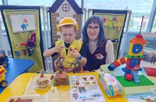 Воспитатель нашего детского сада Ризаева А.Н., со свои воспитанником, представляли профессию строителя на выставочной площадке ранней профориентации.