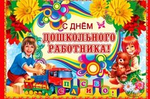 Дорогие коллеги, с Днём дошкольного работника. Желаю всем крепкого здоровья и уважения, жизненных сил и оптимизма, хорошего настроения и удачи. Пусть дети радуют нас своими успехами и дарят нам стимул для нашей деятельности. Счастья нам всем и звонкого смеха рядом!