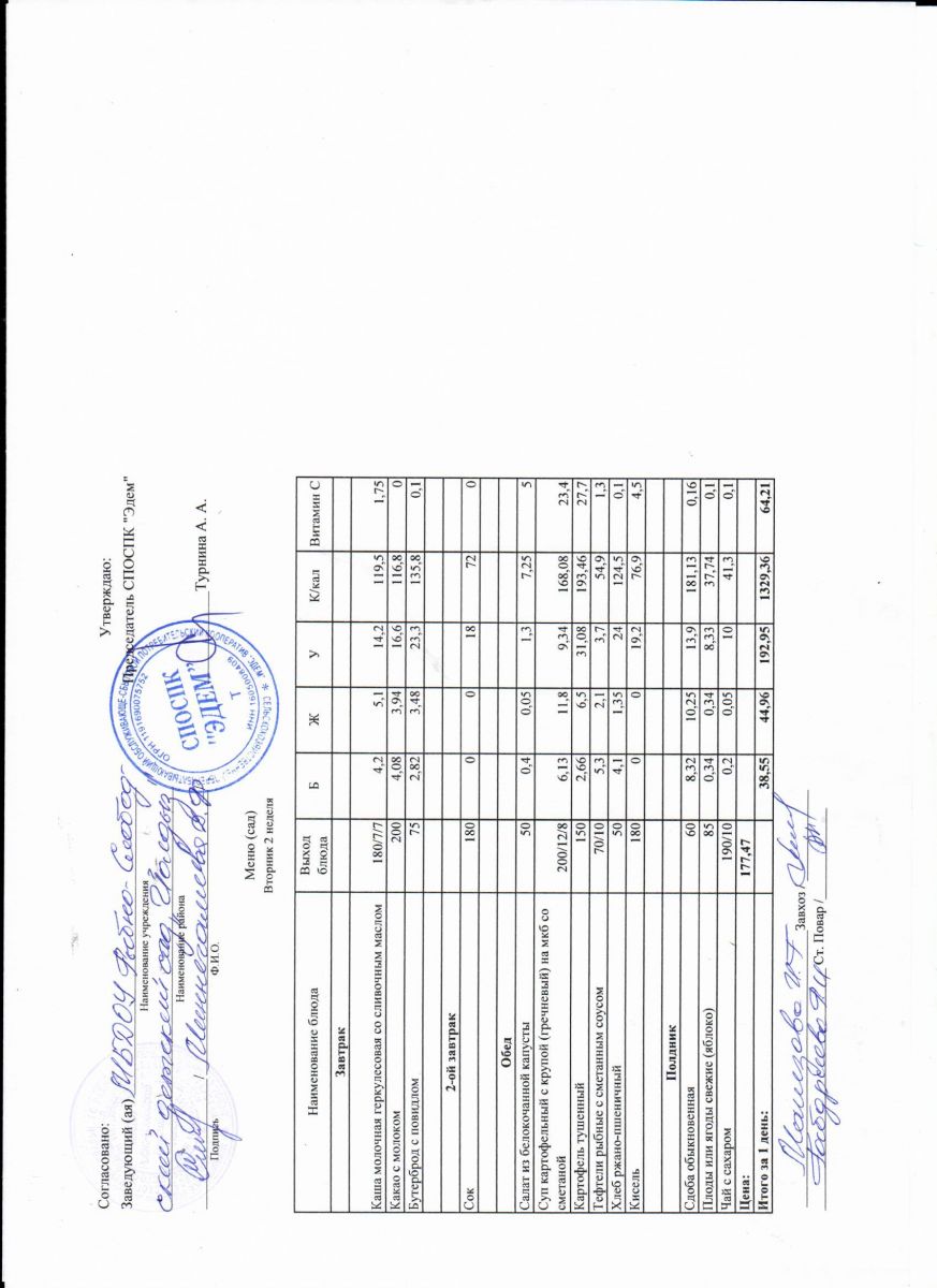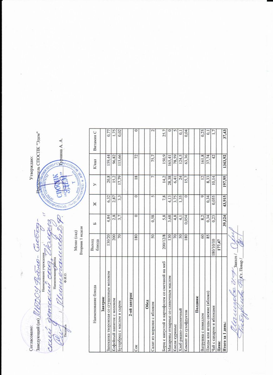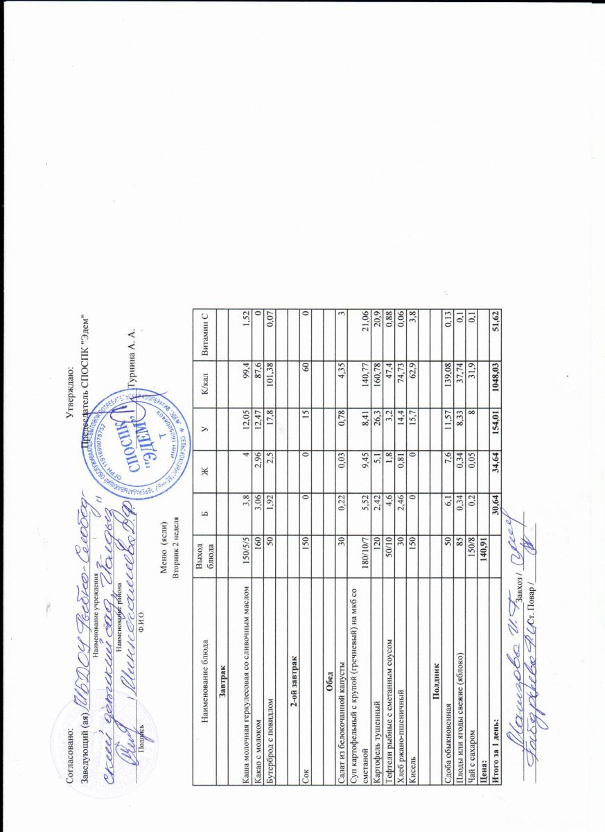 Меню (сад) вторник вторая неделя 20.01.2026 г