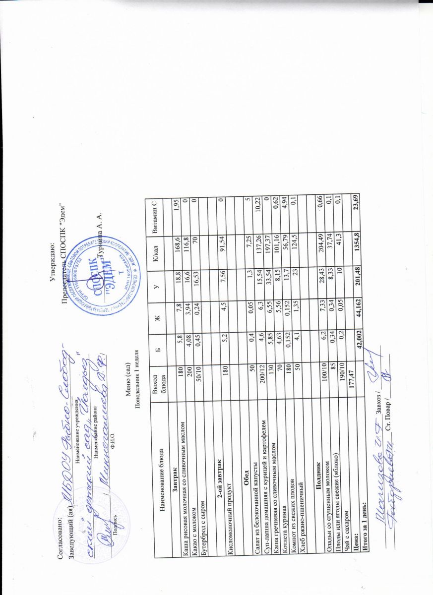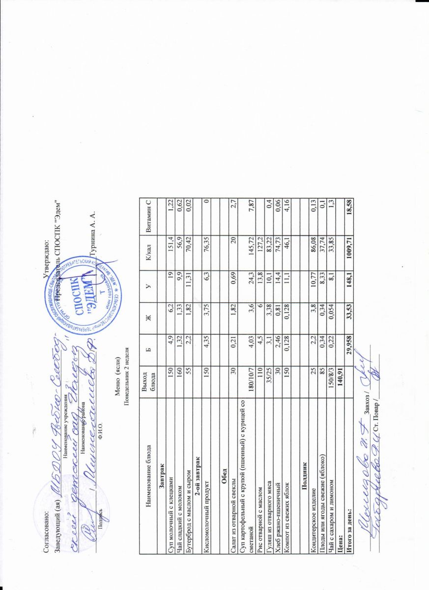 Меню (сад) понедельник вторая неделя 19.01.2026 г