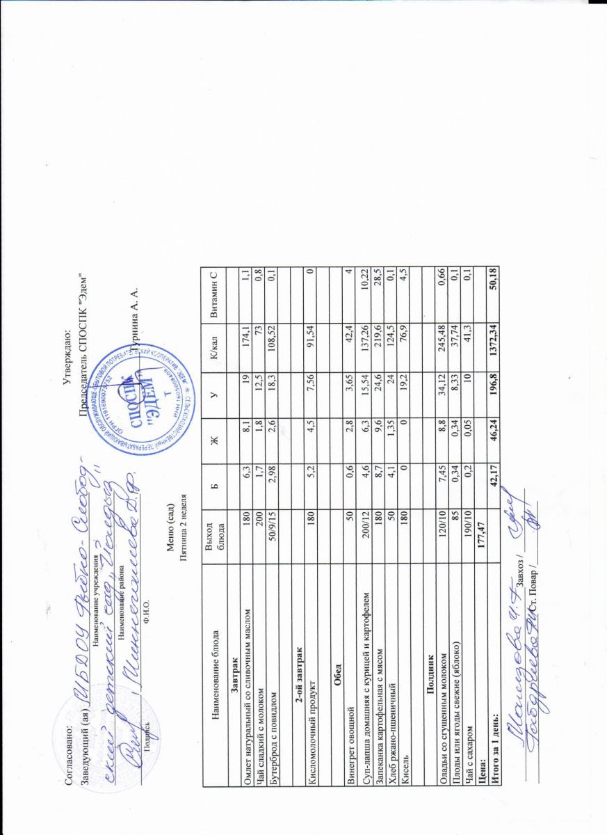 Меню (сад) пятница вторая неделя 23.01.2026 г