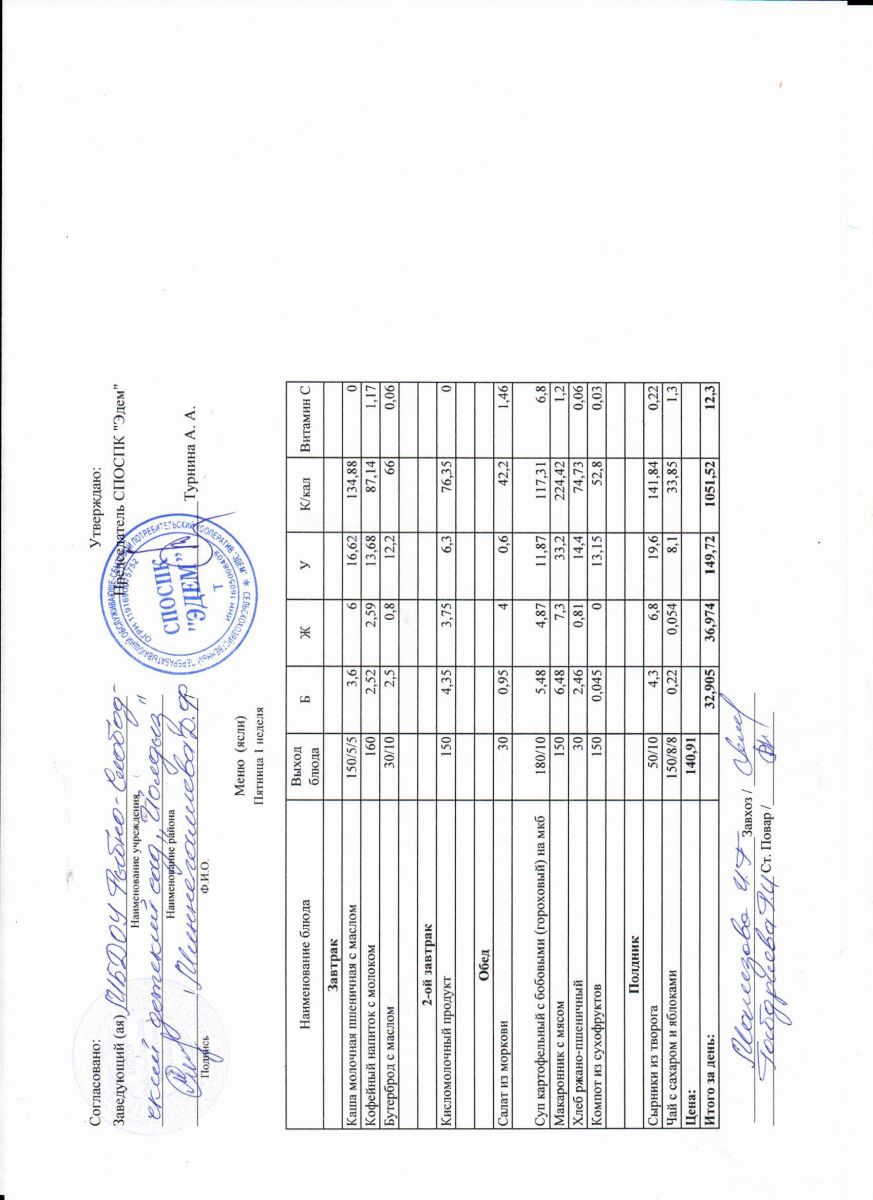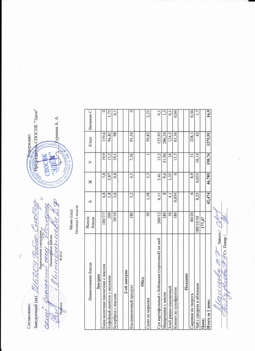 Меню (сад) пятница первая неделя 16.01.2026 г