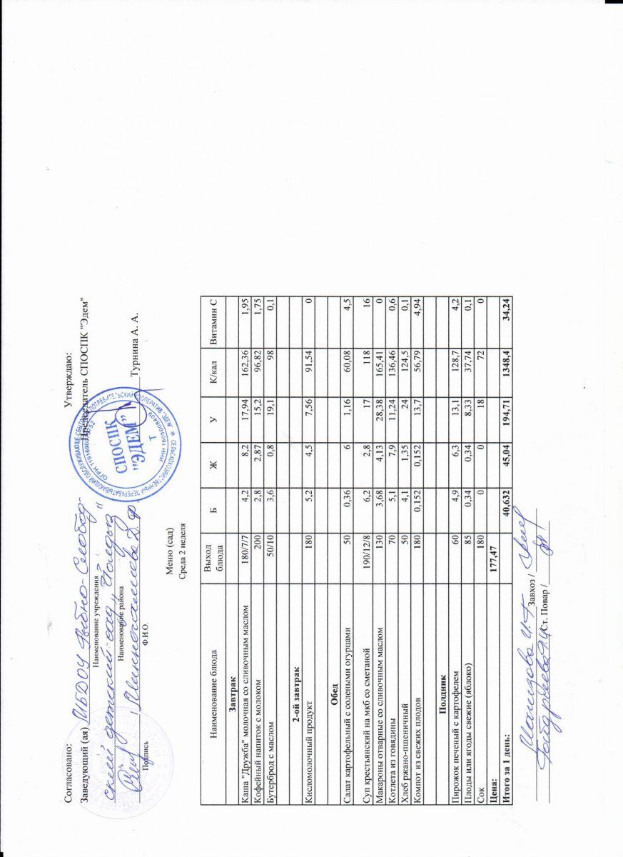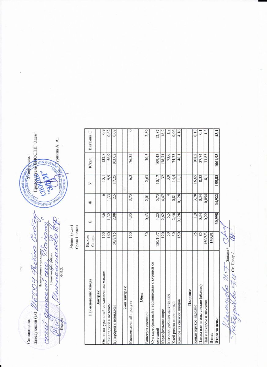 Меню (сад) среда вторая неделя 21.01.2026 г