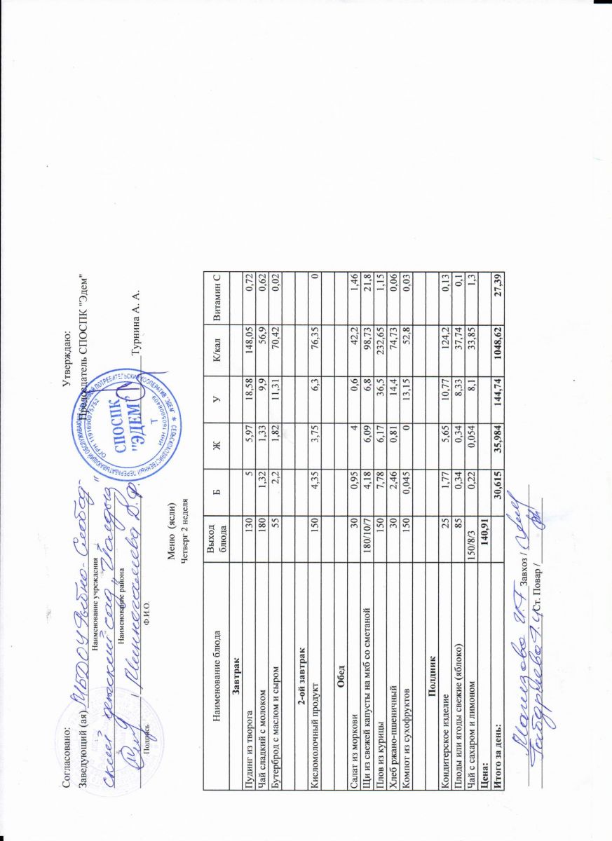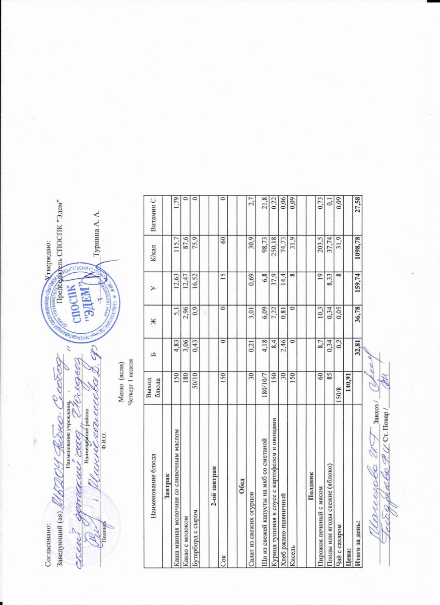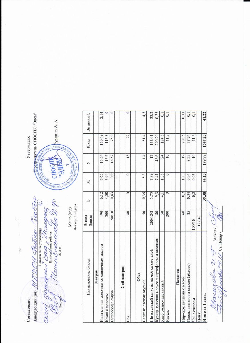 Меню (сад) четверг первая неделя 15.01.2026 г