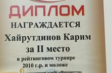 Обучающиеся Центра детского творчества, под руководством Пузырькова И.Р., успешно выступили в шахматном турнире, прошедшем в городе Казани. Хайрутдинов Карим и Камалов Расул заняли соответственно 2 и 3 места в возрастной группе 2010-2015 года рождения. Победители и призеры были награждены дипломами и ценными подарками.