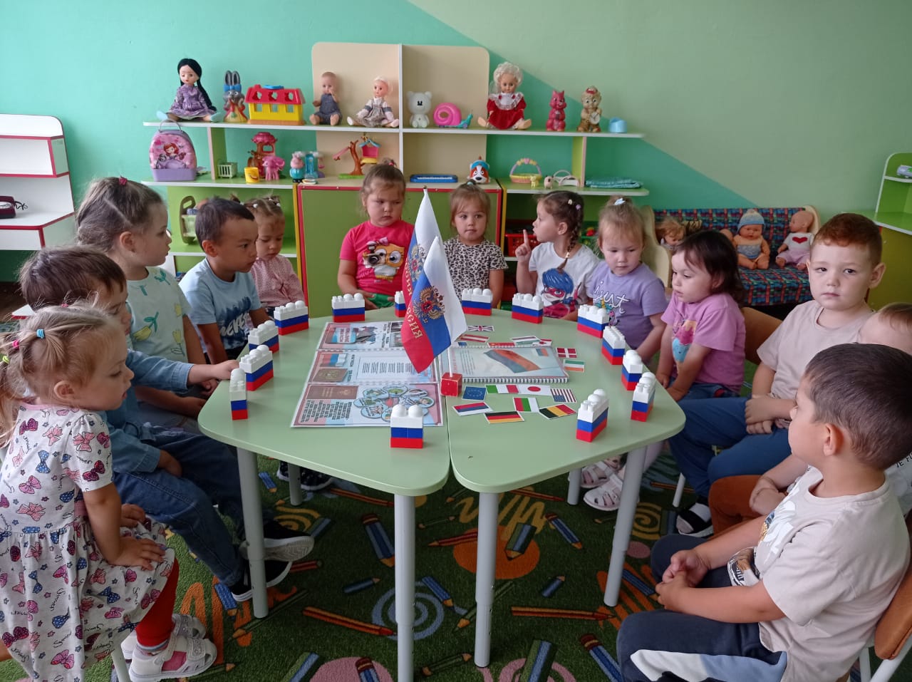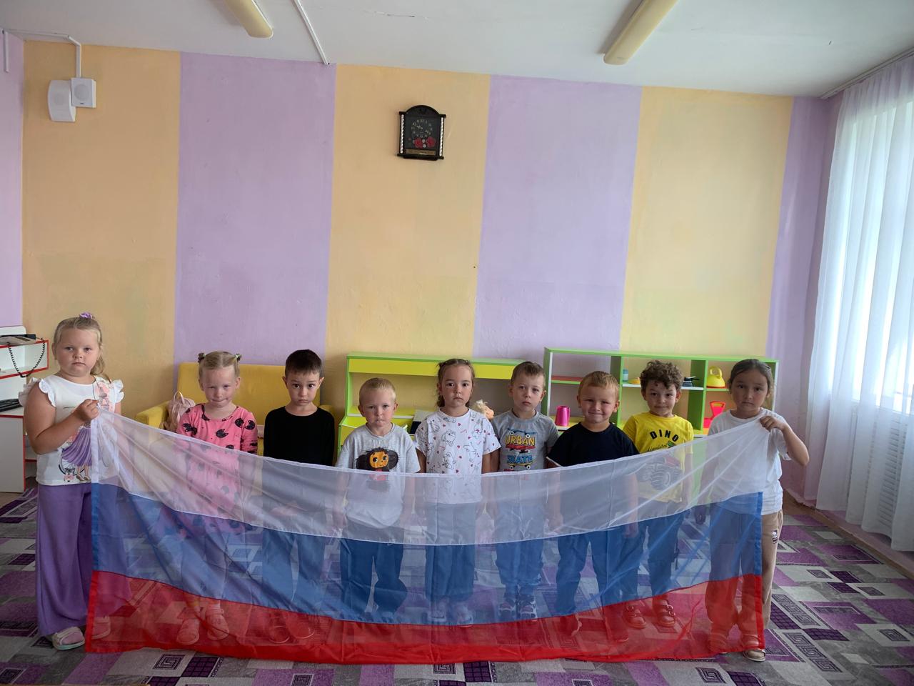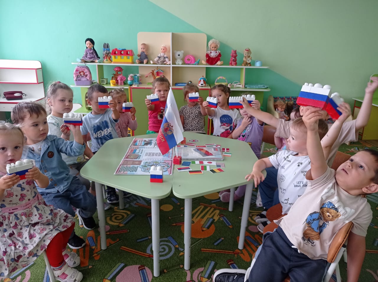 День Флага по праву считается тем праздником, который объединяет россиян в единое общество, напоминающий о таких важных ценностях, которыми является государственность и патриотизм. Ел саен 22 августта Россиядә Россия Федерациясенең Дәүләт флагы көне билгеләп үтелә. Безнең балалар бакчасында тәрбияләнүчеләр илебез символларына хөрмәт белән карыйлар. Алар патриот булып үсә, үз Ватанын ярата.