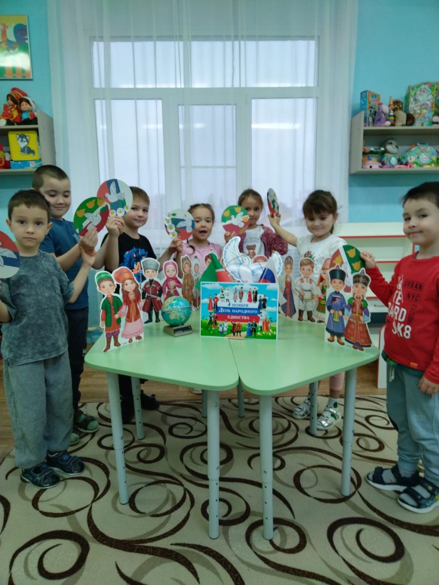"Халыклар бердәмлеге көне" бәйрәме алдыннан "Звездочка" пилот әзерлек төркемендә, тематик чара үткәрелде. Үткәрелгән чара барышында балалар бәйрәмнең барлыкка килү тарихы белән таныштылар. Мәктәпкәчә яшьтәге балалар илебезнең никадәр бөек, матур һәм ресурсларга бай булуын белделәр. Дәүләт символлары турындагы белемнәрне ныгыттылар. Балалар илебездә яшәүче халыклар, милли киемнәр, уеннар, ризыклар белән таныштылар. Россиянең көче төрле милләт кешеләренең илдә дус яшәвендә һәм аларның барысы да үз Ватаннарын Россияне бертигез яратуында икәнен ачыкладылар.