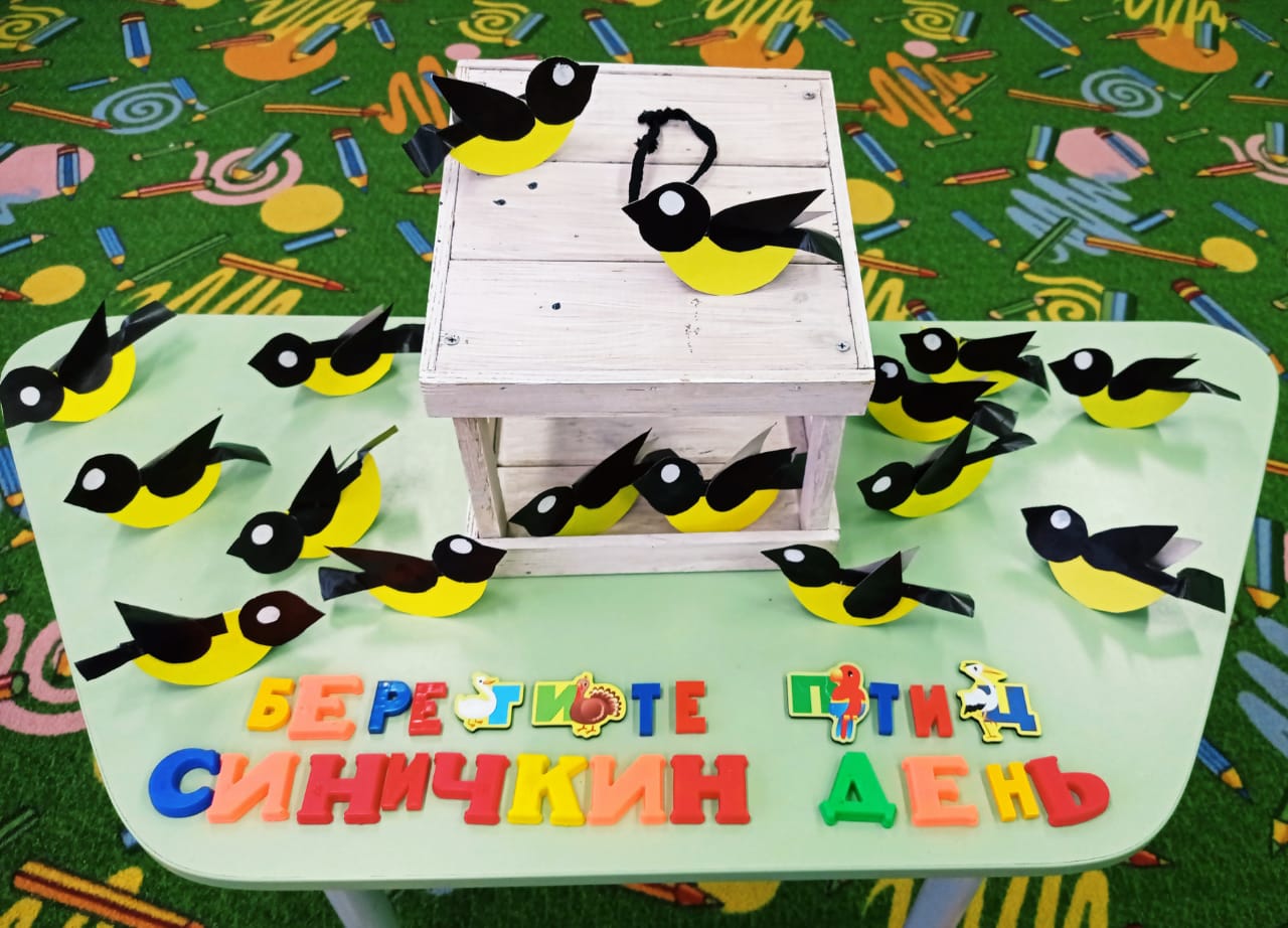 Синичкин день - экологический праздник, который создан по инициативе Союза охраны птиц России и отмечается 12 ноября. По народным приметам, именно к этому времени синицы, предчувствуя скорые холода, перелетали из лесов ближе к человеческому жилью и ждали помощи от людей. В народе говорили «Невелика птичка синичка, а свой праздник знает». В нашем детском саду тоже не забыли о «Синичкином дне». В группах были проведены беседы, в ходе которых дети узнали о разновидностях синиц, чем их кормить, о приметах и традициях, связанных с этими птицами. А также отгадывали загадки о зимующих птицах, вспоминали пословицы и поговорки про птиц, играли в подвижные игры, мастерили птиц и просто любовались зимними птахами, рассматривая иллюстрации. А ребята вместе со своими воспитателями разместили на своих участках и насыпали корм, теперь птики не останутся голодными. Синичкин день мы провели интересно и с пользой. Это был замечательный день!