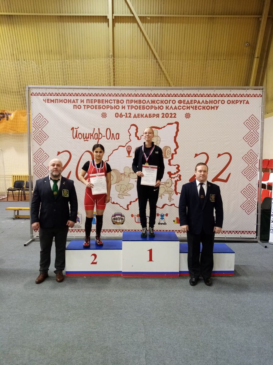 Воспитанники МБУ ДО "ДОО(П)Ц" Рыбно-Слободского муниципального района Республики Татарстан под руководством педагога дополнительного образования Гилемханова И.Р. приняла участие в Первенстве Приволжского федерального округа по пауэрлифтингу (троеборье классическое), который прошёл в г. Йошкар - Ола (06-09.12.2022 г.). Участниками первенства стали сильнейшие спортсмены из 14 регионов Приволжского ФО. В весовой категории 43 кг среди девушек с результатом 197,5 кг 2 место заняла Мухаммадиева Ралина (МБОУ "Урахчинская ООШ"). Поздравляем!