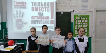 В период с 1 по 9 декабря в школе были проведены мероприятия, приуроченные к Международному дню борьбы с коррупцией:- конкурс рисунков «Школьники против коррупции» в 2-4 классах;-классные часы в 5-8 классах;Коррупциягә каршы Халыкара көрәш көне уңаеннан Юлсубино мәктәбендә "Ришвәт - нәрсә ул?", "Намус кушканча яшәү" темаларына сыйныф сәгатьләре, рәсем конкурсы уздырылды, "Коррупциягә - юк" мәгълүмат стенды яңартылды.