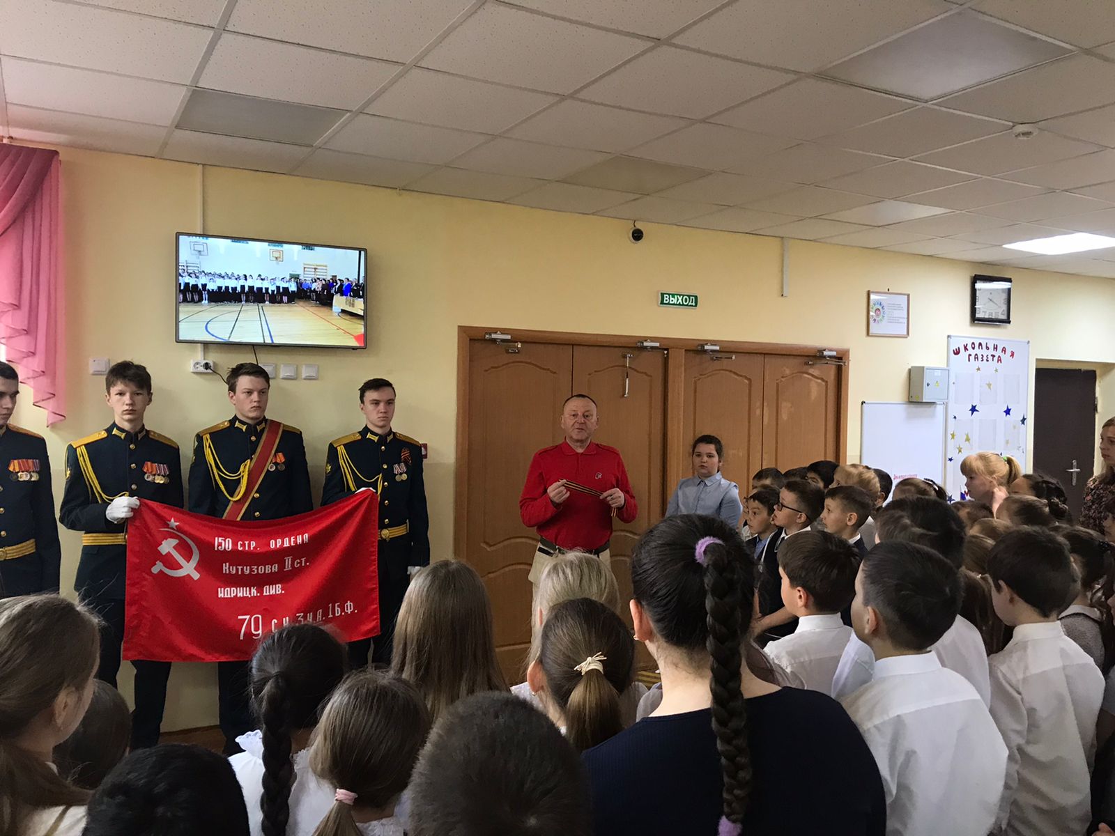 Знамя Победы— штурмовой флаг 150-й ордена Кутузова II степени Идрицкой стрелковой дивизии, водружённый 1 мая 1945 года на крыше здания рейхстага в городе Берлине военнослужащими Красной Армии Алексеем Берестом, Михаилом Егоровым и Мелитоном Кантария. Знаменная группа МБОУ" Рыбно- Слободская сош2" ознакомила юнармейцев и обучающихся данного образовательного учреждения с историей знамени Победы
