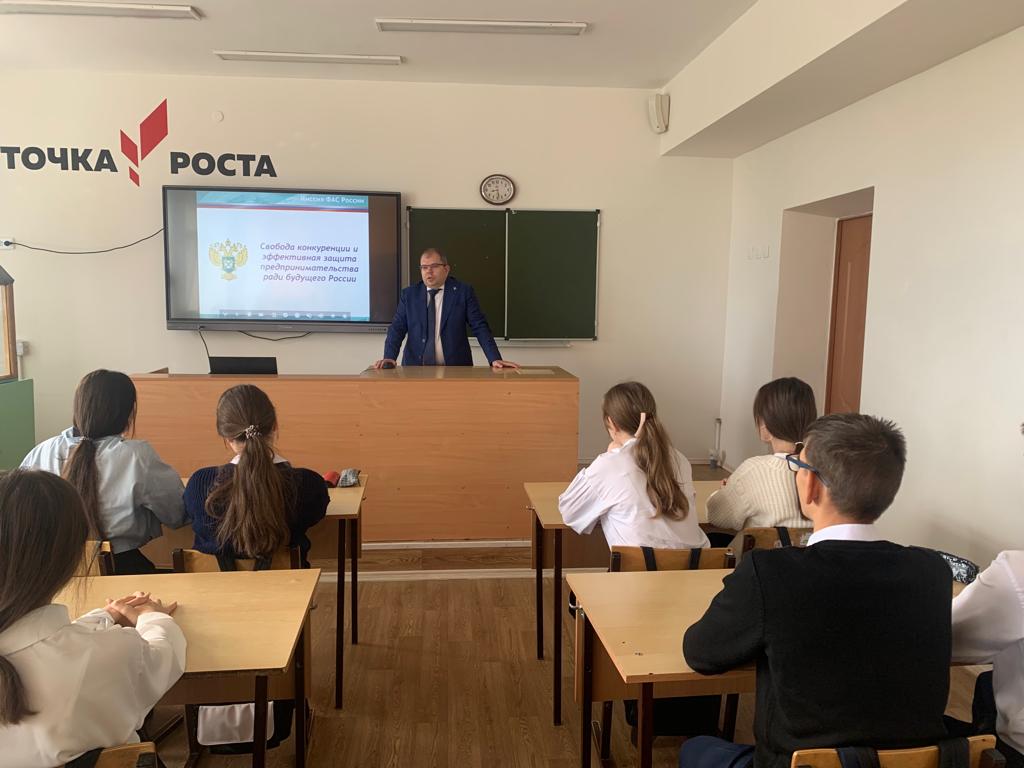 В рамках выездных мероприятий Федеральной антимонопольной службы по Республике Татарстан на базе МБОУ «Рыбно-Слободская гимназия №1» был проведен открытый урок с участием заместителя руководителя ведомства Андрея Розенталя.