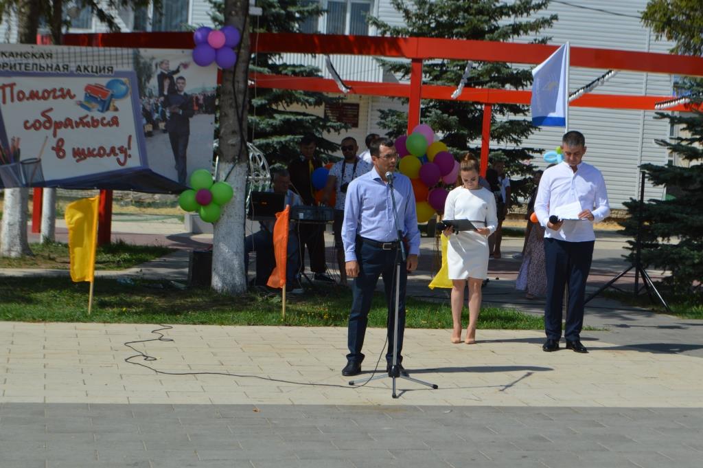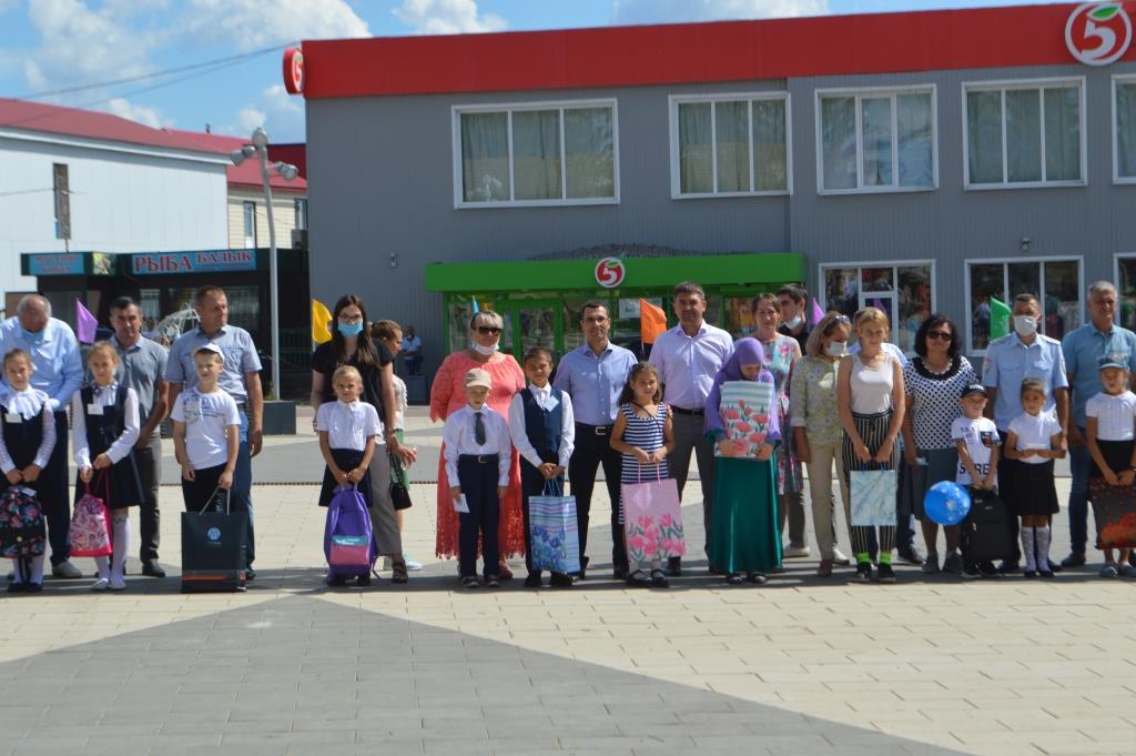 5 августа на центральной площади района состоялось торжественное мероприятие по вручению школьных портфели со школьными принадлежностями.