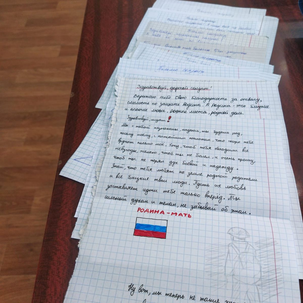 Опубликовано: 14.10.2022«Письмо солдату» — это Всероссийская акция, в ходе которой школьники нашей страны могут написать письма военнослужащим Российской Армии, принимающим участие в специальной военной операции на Украине. Юнармейцы и обучающиеся МБОУ " Рыбно- Слободская сош2" написали письме военнослужащим, участвующим в специальной военной операции на Украине. Письма отправлены в Центральный Дом Российской армии.