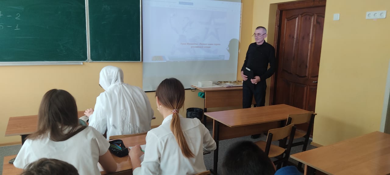 Опубликовано: 19.10.202217 октября в школах Рыбно-Слободского района прошел Урок Мужества. Целью урока является ознакомление обучающихся с примерами героизма и мужества различных поколений защитников Отечества, отличительные черты российского воинства; объяснены причины специальной военной операции и подвиги военнослужащих Вооруженных Сил, оказание поддержки участникам специальной военной операции, а также мобилизованным военнослужащим, проходящим подготовки боевое слаживание.