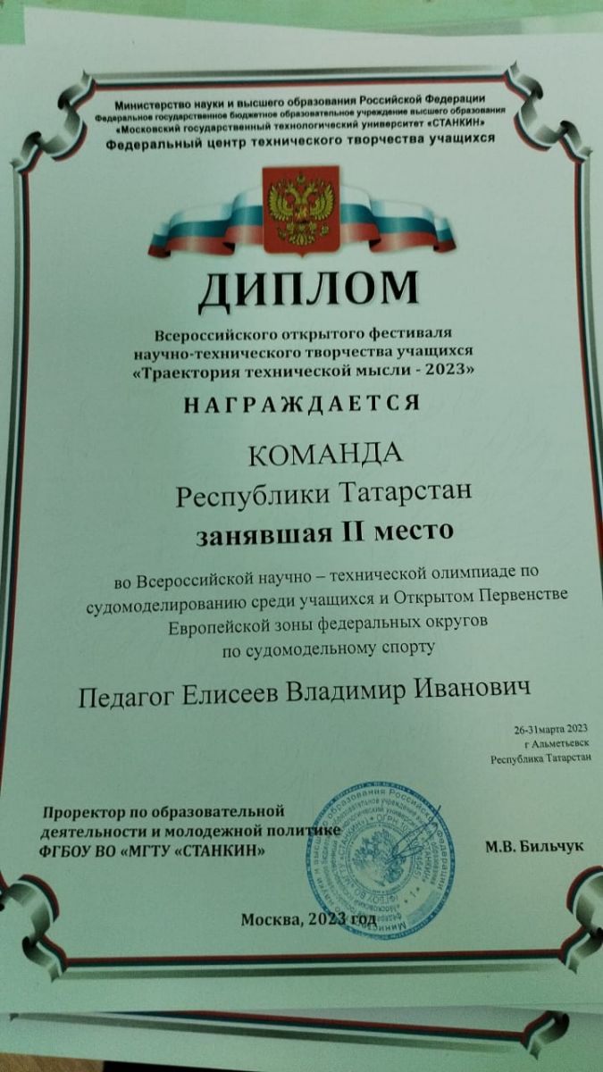 Опубликовано: 04.04.202331 марта обучающиеся детского объединения по судомоделизму вернулись из г.Альметьевска с соревнований, которые проводились с 26 по 31 марта .Это были не просто соревнования, а Всероссийский открытый фестиваль научно-технического творчества учащихся «траектория технической мысли», в рамках которого прошла научно-техническая олимпиада по судомоделированию и Открытое Первенство Европейской зоны федеральных округов по судомодельному спорту. Низамов Камиль в личном зачете занял III место, Сиразов Инсаф -II место. Команда сборной Республики Татарстан, в составе которой соревновались наши ребята, заняла 2 место. Поздравляем участников и руководителя Владимира Ивановича Елисеева с отличным результатом! Олимпиада и Первенство проводятся в рамках проекта «Научно-методическое и организационно-техническое сопровождение участия подведомственных Министерству науки и высшего образования Российской Федерации организаций в формировании Всероссийской экосистемы, обеспечивающей профессиональное самоопределение и развитие научно-технического творчества и инновационной деятельности детей и молодёжи в соответствии с моделями деятель-ности Кружкового движения Национальной технологической инициативы» . Организатор Олимпиады и Первенства - Министерство науки и высшего образования Российской̆ Федерации.
