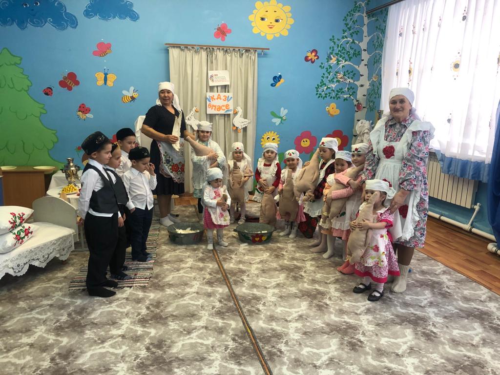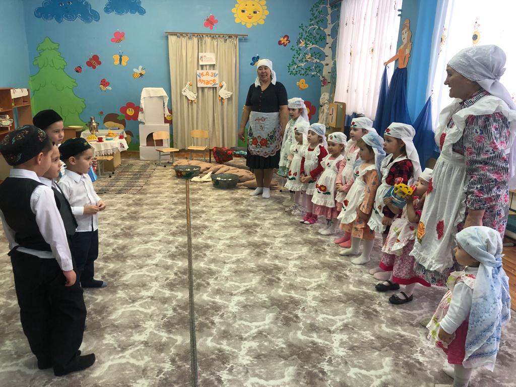 Буген бакчабызда кунелле бэйрэм " Каз омэсе " уткэрдек. Балалар татар халкынын милли киемнэрен киеп, Эби белэн бабайга каз йолкышырга килделэр. Каз йолку торле уеннар, такмаклар, жыр - бию белэн урелеп барды
