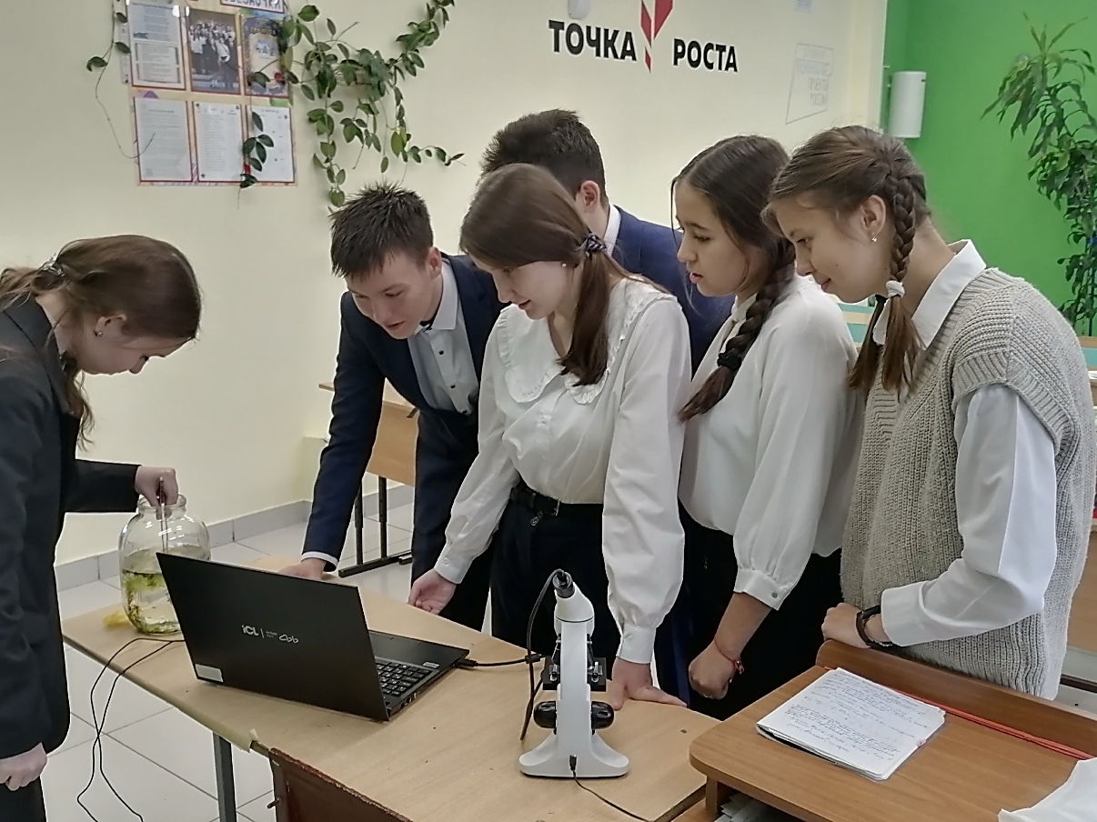 На базе центра «Точка роста», открытого в 2022 году, в рамках реализации национального проекта «Образование», в 10А классе прошел урок по биологии на тему: «Одномембранные органоиды клетки».