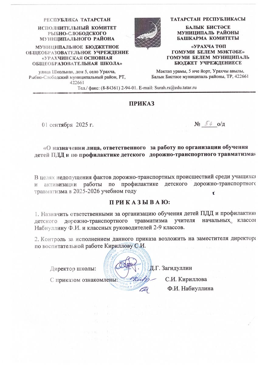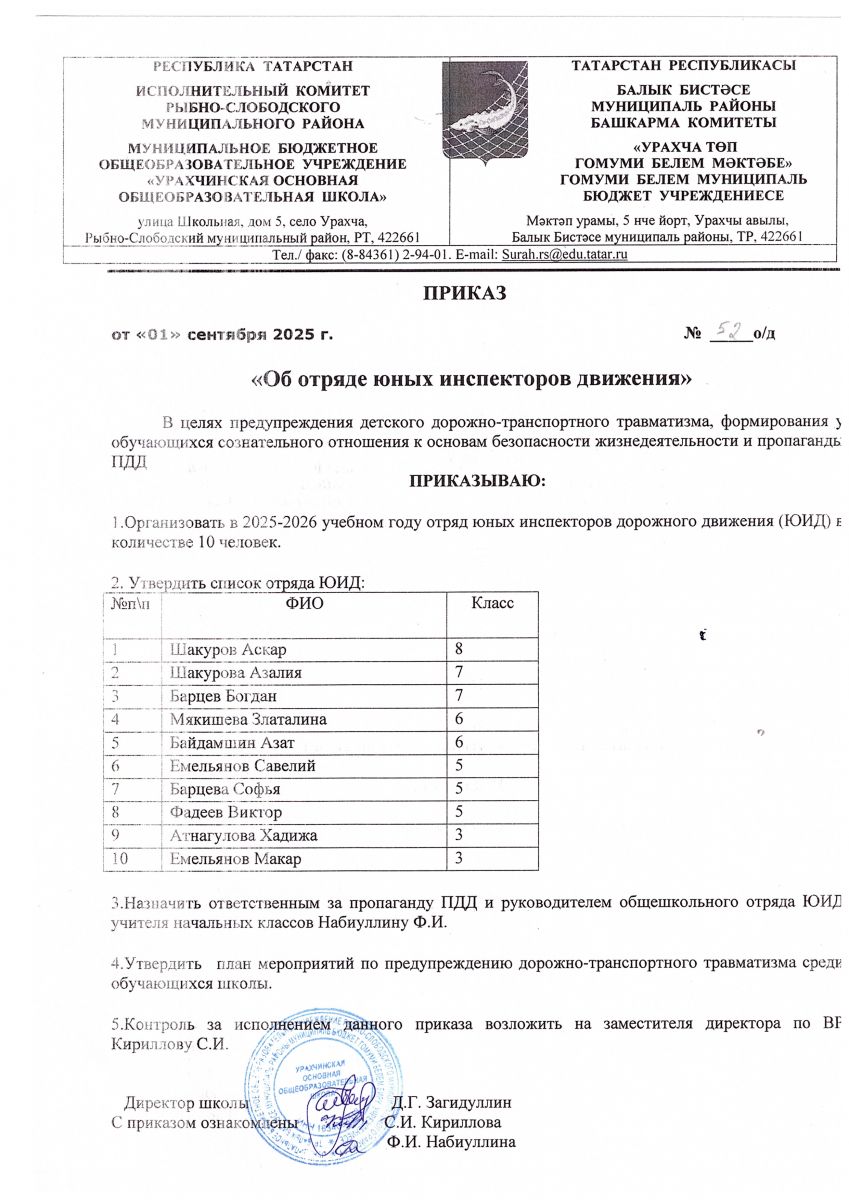 Приказ о создании отряда ЮИД на 2025-2026 учебный год