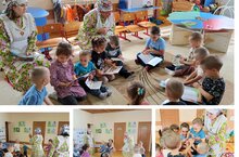 Ике басу Арташ мәдәният йорты хезмәткәрләре һәм авыл китапханәчесе белән берлектә "Күбәләк" балалар бакчасында тәрбияләнүчеләр өчен "Балалар фольклоры иле музыкаль" - уен программасын үткәрделәр. Балалар "Гөлбану", "Түбәтәй", "Без, без, без идек", "Түгәрәкле" уеннарны бик теләп уйнадылар.