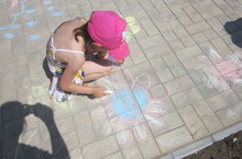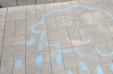 Балалар төсле акбур белән таш идәнгә рәсемнәр төшерделәр. Алар анда җылы кояшны, җәйге болытны, аланнарда һәм болыннарда үсеп утыручы чәчәкләрне сурәтләделәр.