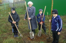 1нче сыйныф укучылары класс җитәкчеләре Зифа Давытовна белән бакчага агач утырттылар.