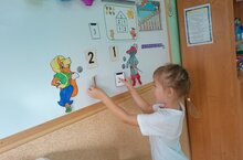 Математика эшчәнлегендә балалар белән 3 санының ике кечкенә саннан торуын өйрәндек. Фикерләү сәләтен үстердек.