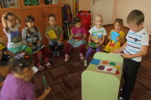 Балалар белән рус теле эшчәнлегендә "Поле чудес" уены аша уенчыкларның төсләрен, зурлыкларын өйрәнүне дәвам иттек.