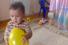 Кечкенә Азамат бакчабызга ияләнеп килә, үзенә дуслар да тапты. Тупларны тарата калса, Инзилә апасы кәрзингә җыештырырга куша.