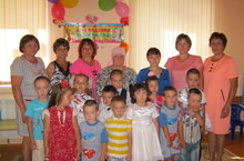 Энҗе, Әминә, Әлфис һәм Шәүкәт үзләренең дуслары, әниләре һәм тәрбияче апалары белән. Сезгә үзебезнең иң матур теләкләребезне телибез: сау-сәләмәт, бәхетле булыгыз.